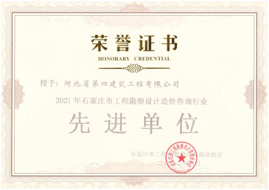 • 石家庄市工程勘察设计造价咨询行业先进单位