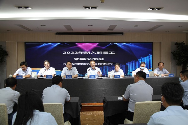7月9日上午,公司召开了2022年新职工入职领导见面会。公司领导班子成员,分公司经理、党总支书记、人事副经理、人力资源科科长等参加。见面会由公司副总经理刘金河主持。会上,一分公司武乡山水项目主管工长刘硕代表老职工发言,他结合自身成长历程,与大家分享入职后的工作经验及感受,激励新同事携起手来以饱满的热情、昂扬的斗志、十足的干劲积极投身到工作中,为公司发展贡献自己的青春力量。西安航空学院毕业生陈一强代表新职工与大家分享了培训期间的收获和感受,多角度抒发了在培训中的所思、所感、所悟,表达了要以最快的速度完成从学生到企业员工角色的转变,尽快融入河北四建大家庭的坚定信心和美好期待。他表示,新职工要充分利用公司搭建的平台,在三年内考取二级建造师的证书,五年考取一级建造师并进入到项目班子成员,在公司发展中出业绩、作贡献。